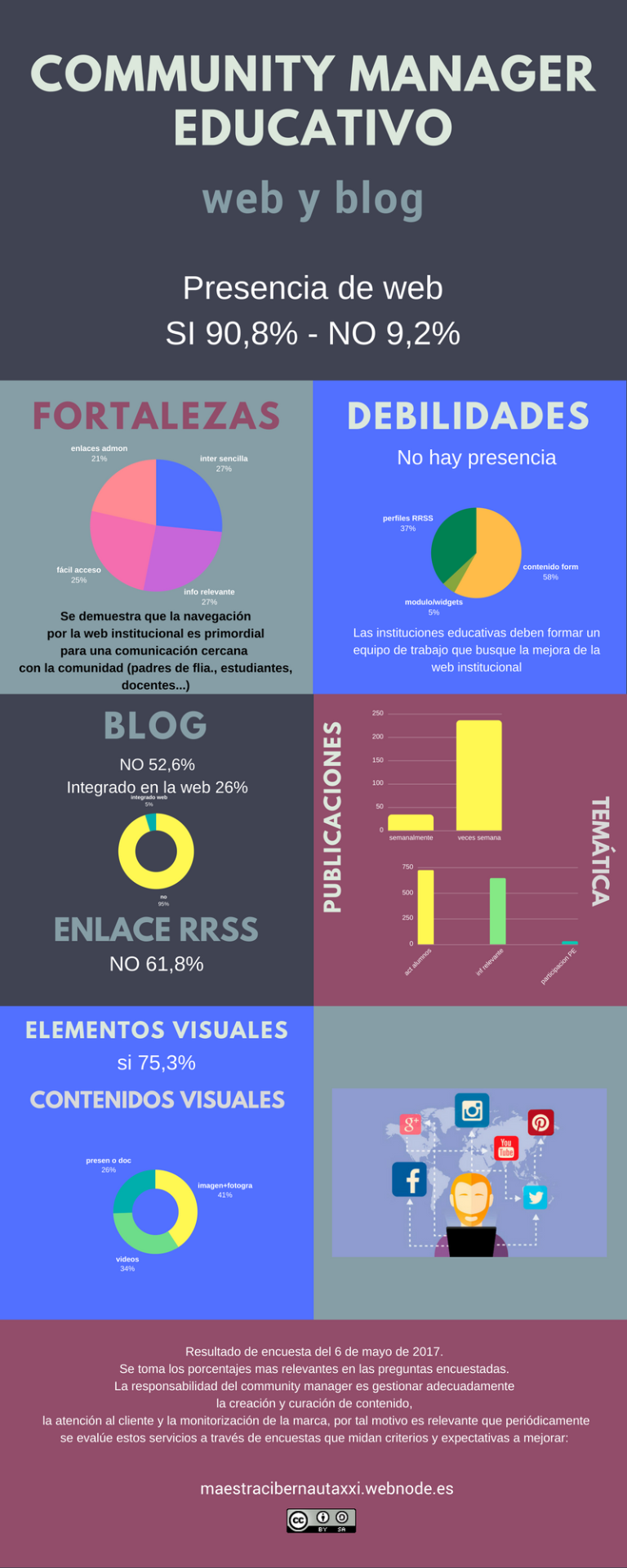 1. Hemos visto la importancia de la implementación del blog y la web en el ámbito educativo. El reto de esta unidad nos propone realizar una reflexión - INFOGRAFÍA, sobre los "espacios de las organizaciones educativas" teniendo como herramienta la encuesta proporcionada por el mooc.